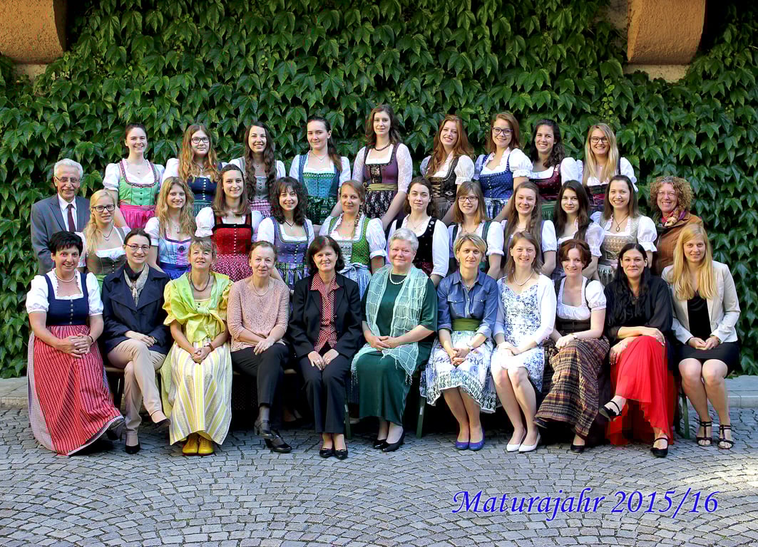 2. Reihe v.l.n.r: Dipl.-Päd. Ing. Bernadette HOFBAUER, Ing. Veronika HAAS, OStR Dipl.-Ing. Ilse STRASSER, Anna LEITHNER , Carina GÜNSTHOFER, Anna AICHBERGER, Sonja SIMETZBERGER, Michaela EDER, Alexandra BUCHINGER, Karin WINZER, Julia MOTL, Lena-Maria SCHIRRER